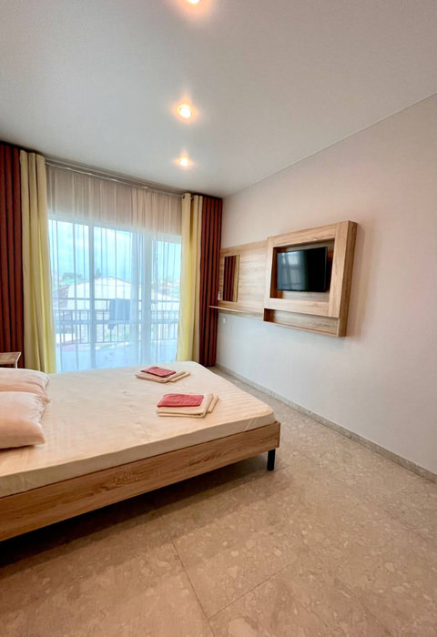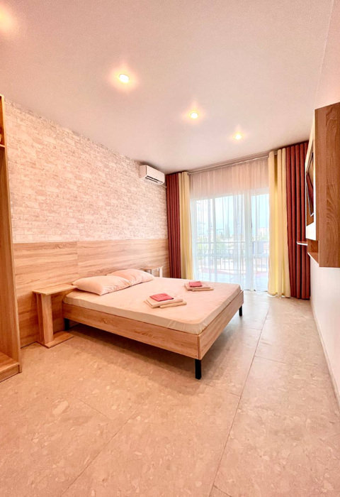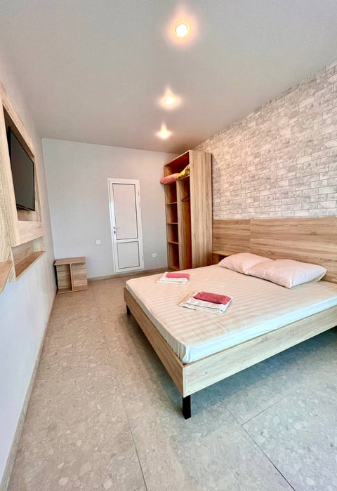Площадь номера - 18 кв.м. 1 комната. 2 осн. места. В номере: телевизор; холодильник; кондиционер; душ; 1-спальные/ 2-спальная кровать; санузел. 1 доп. место: